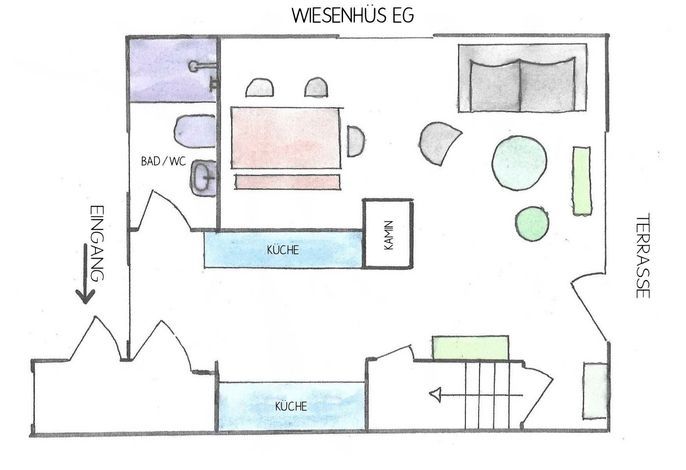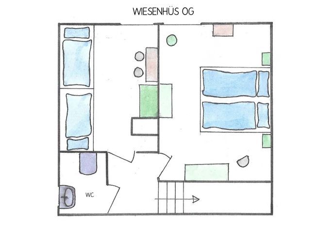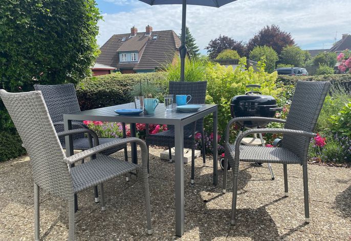 Das ruhig gelegene und von Feldern umgebene Wiesenhüs ist eine DHH, die im Jahr 2020 vollständig renoviert wurde. Das Haus erstreckt sich über zwei Etagen und bietet ausreichend Platz für bis zu vier Personen zuzüglich einer Kinderaufbettung. Im Erdgeschoss befindet sich die offene Küche. Von ihr aus gelangt man einerseits ins Duschbad, andererseits in den großzügigen Wohnbereich mit Ess- und Sitzecke. Dort befindet sich ein Flat-TV, ein Blue-ray-Player und eine Multimediaanlage. An das Wohnzimmer schließt eine Terrasse an, die bis zum späten Mittag Sonne bietet. Für den Genuss der Nachmittags- und Abendsonne steht auf der anderen Hausseite eine zweite Terrasse mit Strandkorb und Blick auf die Wrixumer Mühle zur Verfügung. Im Obergeschoss befinden sich ein weiteres WC, ein Schlafzimmer mit Doppelbett, Einbauschrank und TV sowie ein zweites Schlafzimmer mit Alkovenbetten im friesischen Stil. Hier lässt sich ein zusätzliches Bett als fünfte Schlafgelegenheit herausziehen. Ein privater PKW-Stellplatz befindet sich am Haus. Das gemütliche Wiesenhüs liegt ruhig und ist geschmackvoll, hochwertig-nordisch eingerichtet. Mit gut ausgestatteter Küche, Kaminofen, zwei Terrassen, Grillgelegenheit, eigenem Strandkorb und weitem Blick über die umliegenden Felder bietet es alles, was Sie zum Entspannen brauchen. Das Wiesenhüs liegt perfekt für alle, die einerseits die Ruhe und Idylle eines ursprünglichen friesischen Dorfes suchen, andererseits aber auf das pulsierende Strand- und Stadtleben der angrenzenden Stadt Wyk nicht verzichten möchten. Sowohl die Weiten des Marschlandes mit seinem riesigen Vogelschutzgebiet als auch die Fußgängerzone, zahlreiche Einkaufsmöglichkeiten und der Badestrand sind in wenigen Minuten erreichbar.