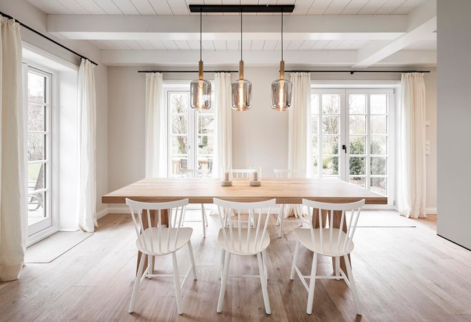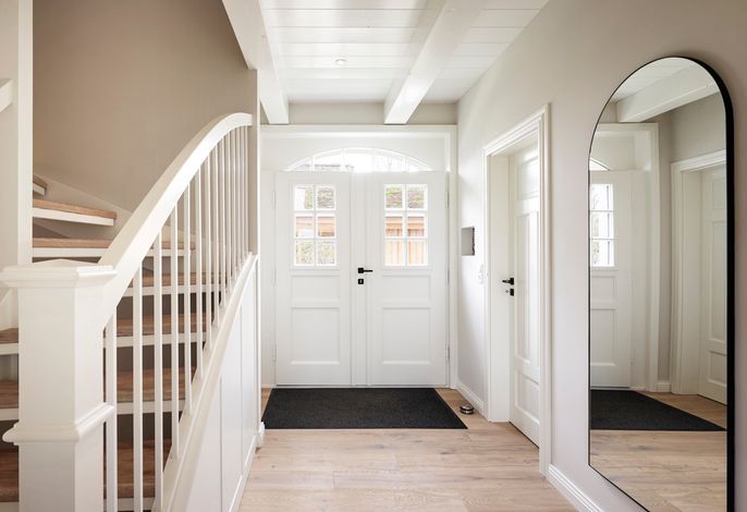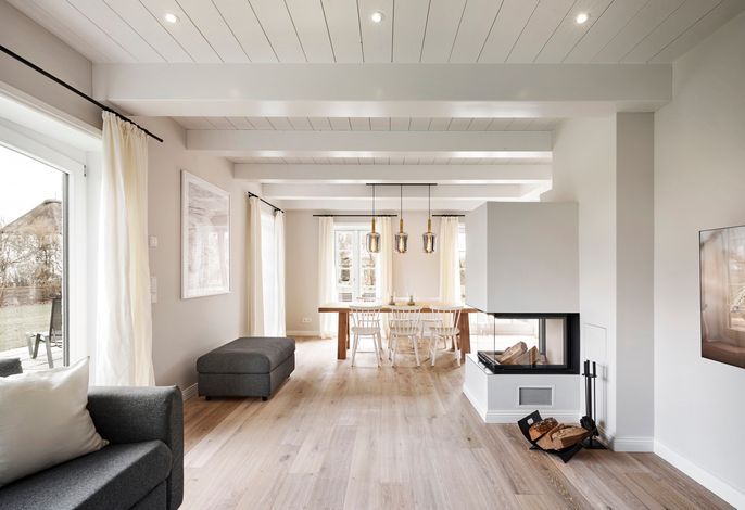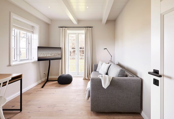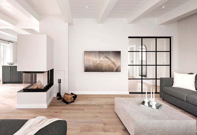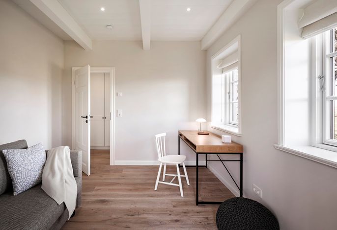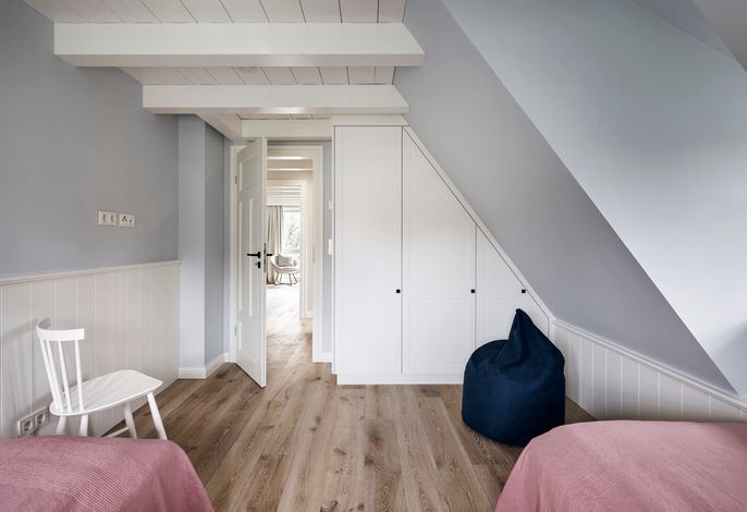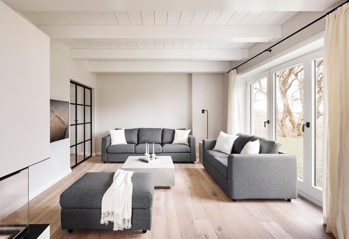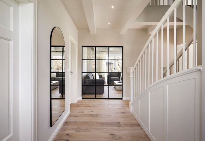 'Wit Parel' wurde mit viel Liebe zum Detail errichtet und mit seiner weißen und dunkelgrauen Gestaltung verbindet es gekonnt moderne Elemente mit gemütlichem Ambiente. Jeder Raum ist sorgfältig gestaltet und bietet einen Mix aus Eleganz und Behaglichkeit. In diesem luxuriösen Ferienhaus bleiben keine Wünsche offen. Die drei Schlafzimmer bieten viel Platz: ein Doppelzimmer mit eigenem Badezimmer, ein weiteres Doppelzimmer und ein Kinderzimmer mit zwei Einzelbetten teilen sich ein Badezimmer mit Badewanne – perfekt für Familien oder eine Gruppe von Freunden. Alle Schlafzimmer haben Einbauschränke und Fernseher. Das Highlight des Hauses ist das großzügige, helle Wohnzimmer mit zahlreichen bodentiefen Fenstern und einer offenen Küche - ein einladender Raum, in dem man sich gerne aufhält und gemeinsame Zeit genießt. Ein separates Arbeitszimmer mit Blick über die Felder bietet die Möglichkeit für Ruhe und Konzentration. Der wunderschöne Garten mit einer großen Südterrasse bietet im Sommer viel Platz für die ganze Familie. Die Sauna mit einem Ruhebereich und großem Flachbildschirm sowie einem zusätzlichen Badezimmer im ausgebauten Keller ist ein zusätzliches Juwel, das für Entspannung und Wellness sorgt, besonders nach einem Tag voller Aktivitäten auf der Insel. Das Haus vereint Komfort, Stil und eine einladende Atmosphäre und verspricht einen unvergesslichen Aufenthalt.