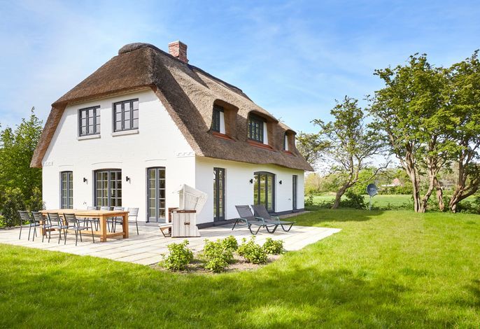 Das wunderschöne reetgedeckte Einzelhaus 'Wit Parel’ liegt ruhig in einer Sackgasse am Dorfrand des zauberhaften Nieblums und bietet einen herrlichen Blick über die Felder. Nieblum, eines der schönsten Dörfer von Föhr, verleiht diesem außergewöhnlichen Reethaus eine besonders malerische Kulisse, die Ruhe und Erholung verspricht. Mit dem Fahrrad sind es nur 10 Minuten zum Strand.