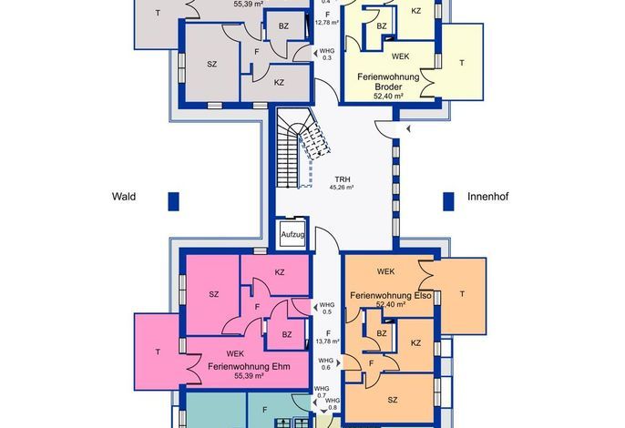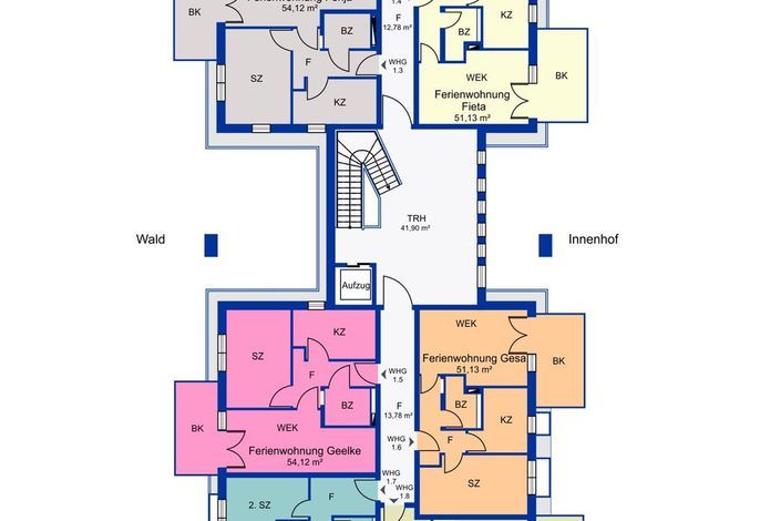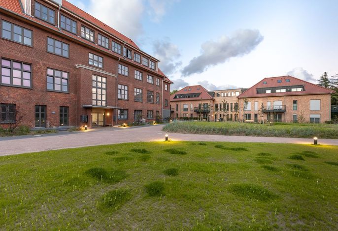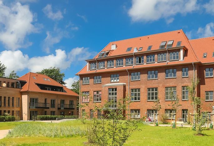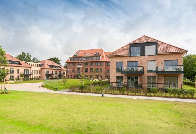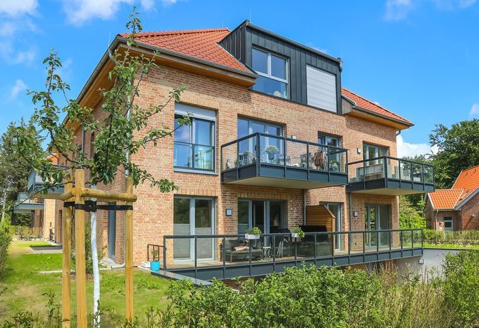 Herzlich Willkommen auf dem 1,03 Hektar großen Gelände am Golfplatz 9b in Wyk auf Föhr, wo wir Ihnen insgesamt 20 moderne und frisch gestaltete Ferienwohnungen anbieten. Unsere Ferienwohnungen bieten auf 51-139 m² Platz für bis zu 6 (teilweise auch für bis zu 8 Personen) Personen und sind barrierearm sowie mit einem Fahrstuhl erreichbar.