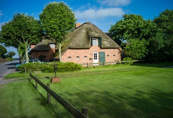 Der Lorenzenhof ist zweifellos eines der schönsten historischen Friesenhäuser auf Föhr und in den Kirchenbüchern von St. Laurentius in Süderende erstmalig im Jahre 1678 erwähnt. Bis auf den heutigen Tag lässt sich die Geschichte seiner Eigentümer lückenlos verfolgen. Der letzte langjährige Eigentümer war Cornelius Lorenzen, 1886 geboren und 1934 Gemeindevorsteher geworden. Die heutige Küche in der Wohnung 1 war sein Amtszimmer. Der Lorenzenhof steht unter Denkmalschutz. Unter seinem mächtigen Reetdach entstanden drei großzügige und komfortable Wohnungen auf jeweils zwei Geschossen. Sie sind räumlich komplett voneinander getrennt und ähneln Häusern mit Wohnflächen von ca. 90 bis 130 qm. Prachtvolle Holzbalkendecken, offene Kamine, Friesentüren sowie Antiquitäten hier und dort verleihen den Wohnungen ein ländliches, wohnliches Gepräge. Wo der Denkmalschutz es erforderte, wurden die Stallfenster und -türen erhalten und integriert. Alte Tonfliesen in Erdfarben und hochwertige Spannteppiche bedecken die Böden. Die Bäder sind großzügig geplant und die Küchen sehr gut ausgestattet. Welcher Wohnung man den Vorzug geben sollte, ist wirklich schwer zu sagen. Jede hat durch Grundriss und Ausstattung ihren besonderen Charme, und urgemütlich sind sie alle drei.