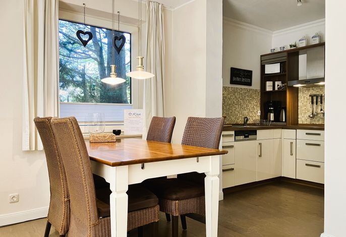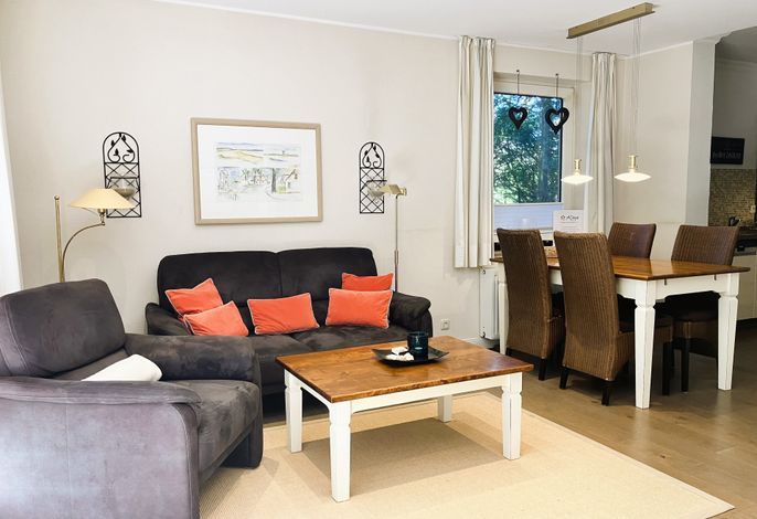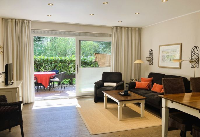 Früher war Föhr als die grüne Insel bekannt und in unserer Wohnung 12 am Südstrand wird man daran erinnert. Nur ca. 200m entfernt vom beliebten Wyker Südstrand liegt die Unterkunft mitten im alten Kurpark mit seinem vielseitigen Baumbestand. Hier können bis zu 4 Personen entspannen und vom stressigen Alltag abschalten. Genießen können Sie nicht nur die Lage inmitten der Natur, sondern auch Ihr Feriendomizil mit der hochwertigen und geschmackvollen Einrichtung, die keine Wünsche offen lässt. Zwei gemütliche Schlafzimmer, ein Bad mit ebenerdiger Dusche und der weitläufige Wohnbereich mit bequemer Sitzgruppe, Essecke und Küchenzeile sind charmant und gepflegt. Auf Ihrer Terrasse wartet in den Sommermonaten (ca. Mai bis ca. September) ein eigener Strandkorb auf Sie, der das Föhr-Urlaubs-Feeling vollendet. Buchen Sie gleich Ihren nächsten Föhr-Aufenthalt in unserer Wohnung 12 am Südstrand.