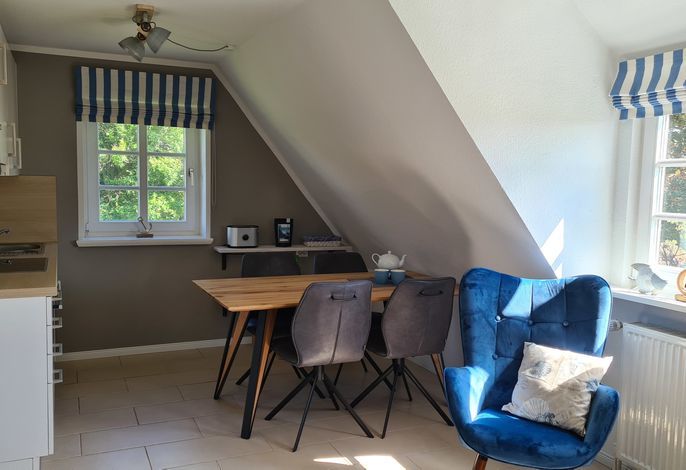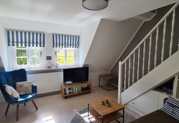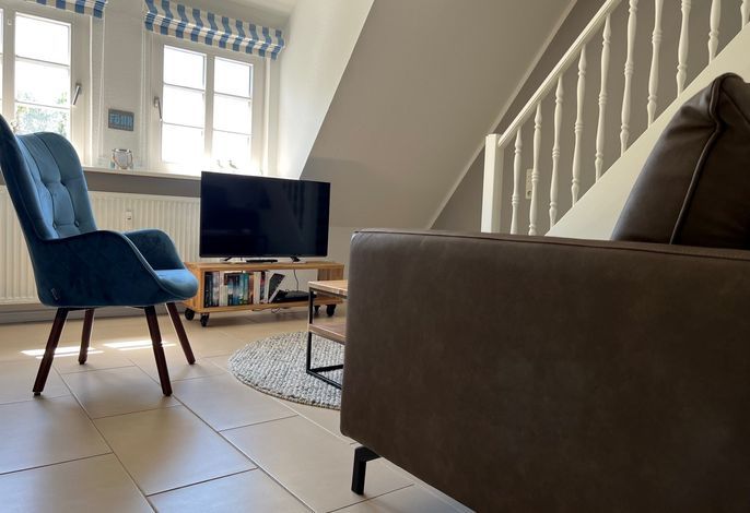 Die liebevoll individuell eingerichtete 2-Zimmer-Ferienwohnung befindet sich im Obergeschoss eines kleinen gemütlichen Friesenhauses - ruhig am Ortsausgang von Wrixum gelegen.