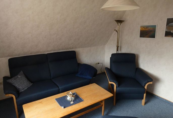 Die Ferienwohnung befindet sich im Dachgeschoß unseres Hauses in der Badestraße 88a nur ca. 250 Meter vom Südstrand entfernt. An der Badestraße befindet sich ein öffentlicher Parkstreifen, wo Sie Ihr Auto abstellen können. Im Garten stehen Möbel und Liegen zur Benutzung bereit.