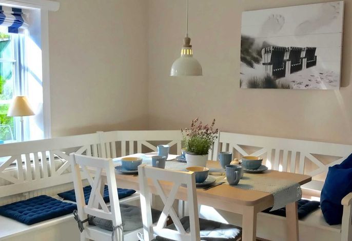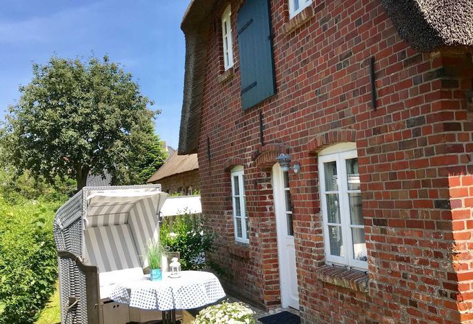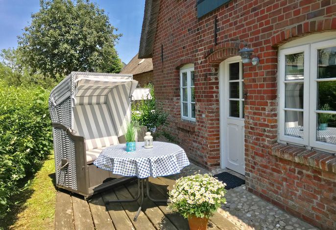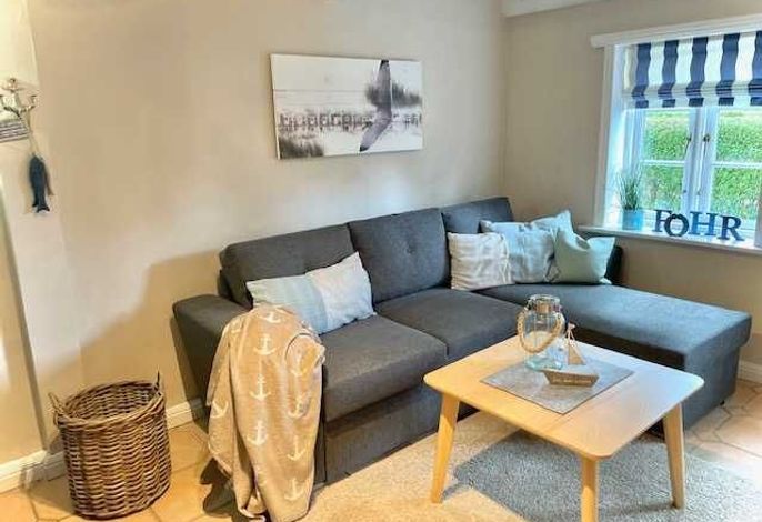 Modellregion Nordfriesland- Vermietung ab 1. Mai 2021. Kontaktfreie Schlüsselübergabe ++++Neu und sehr geschmackvoll maritim eingerichtete Ferienwohnung unter Reet in einem historischen Friesenhof am Rande der Marsch ist ca 65qm groß und bietet Platz für 4 Gäste. Die Ferienwohnung liegt im Erdgeschoss und verfügt über eine eigene Terrasse in einem schön eingewachsenen Garten, eine neue moderne Küche elegant im Wohnraum integriert. Die schöne Ferienwohnung liegt direkt an der Marsch in Laufentfernung zu dem Städtchen Wyk.