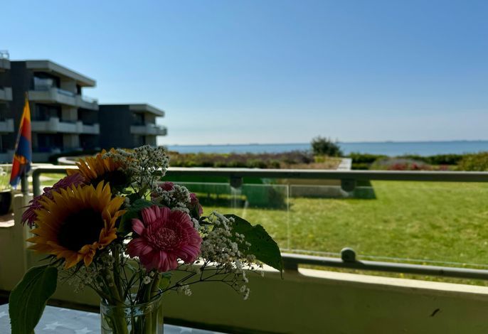 Beginnen Sie den Morgen mit einem Balkonfrühstück in der Sonne und genießen den weiten Blick auf die Halligen und zur Insel Amrum, beobachten Sie die Fähren und Segelboote und entspannen bei den Sonnenstunden. Auch ein Sundowner am Abend und gemütliche Stunden mit Mee(h)rblick runden die Urlaubsstimmung ab.